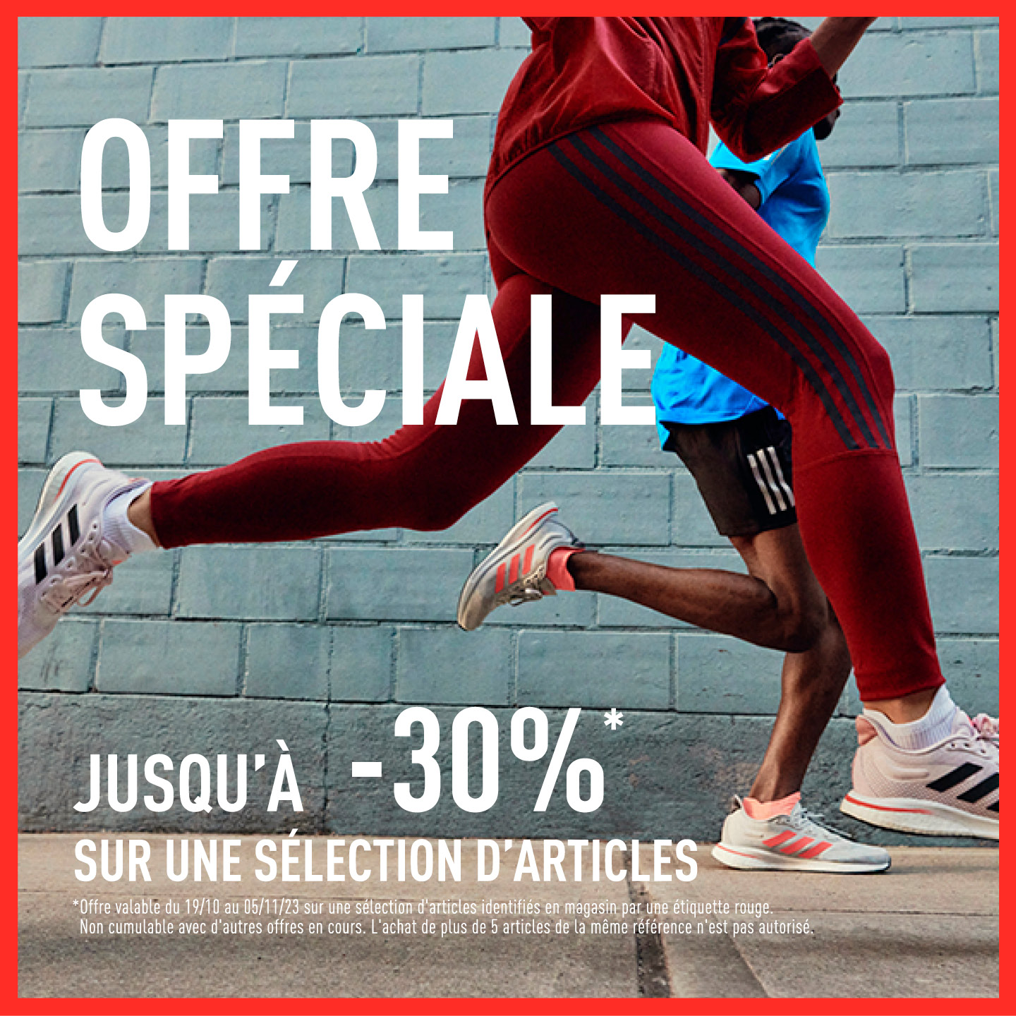 octobre 18, 2023 Offre Spéciale Envie de faire du sport ou de vous racheter des affaires ? Jusqu’à -30% sur une sélection d’articles chez Adidas ! C’est du 19 octobre au 5 novembre ! *voir conditions en magasin 🙂 Partagez ceci : Aller sur Facebook Contact